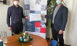 Ve středu 2. prosince 2020 předal zástupce vedení společnosti Petr Kučera symbolický darovací šek zástupci vedení krajské nemocnice Miroslavu Plonkovi,